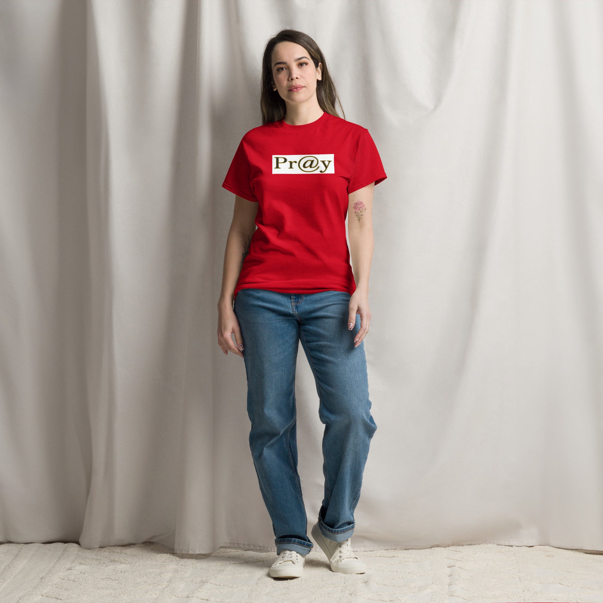 Pr@y WHITE BACKGROUND UNISEX T SHIRT