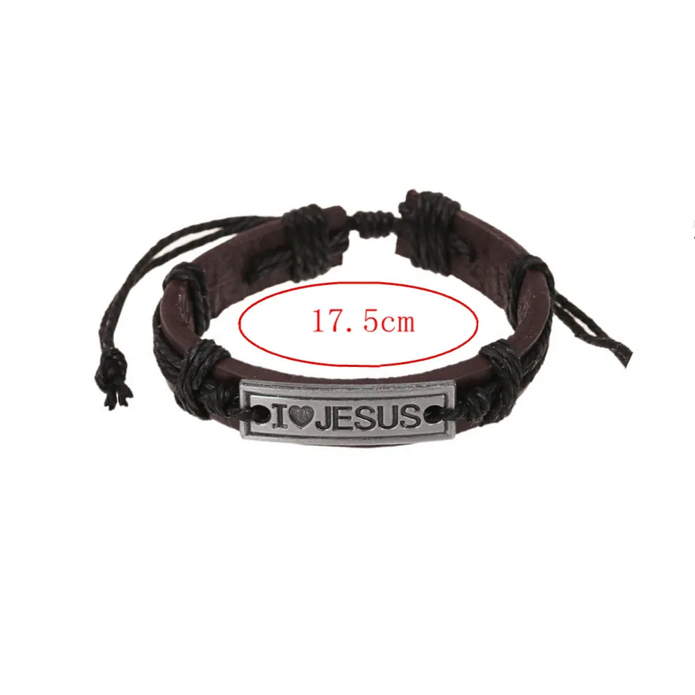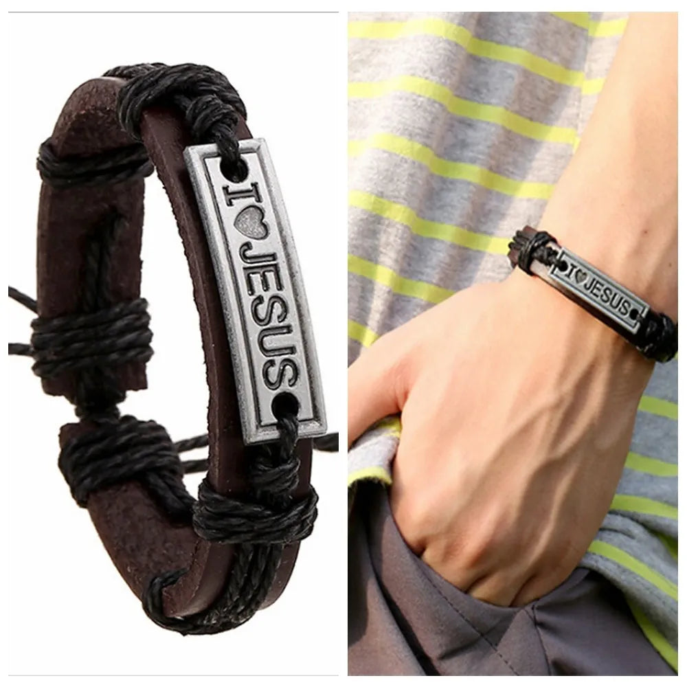 Vintage Wrap Alloy Christian Wristband "I Love JESUS" Religious Bracelet Leather Cuff Bangle