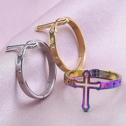 Belief Religious Jesus Cross Rings For Women Men Accessories Opening Adjustable Stainless Steel Ring Couple Jewelry Anillos Gift